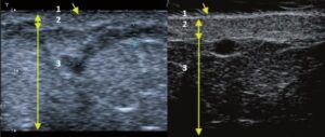 Para los fines de este trabajo, las imágenes ecográficas se han obtenido mediante equipos de alta frecuencia, es decir, Episcan con un transductor mecánico de 50 MHz (Longport International, Gran Bretaña, EE.UU.), DermaMed con un transductor mecánico de 48 MHz (Dramiński, Polonia) y Sonix con un transductor electrónico de matriz lineal con la frecuencia de 40 MHz (Ultrasonix, Canadá).
