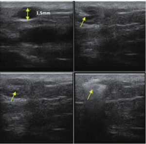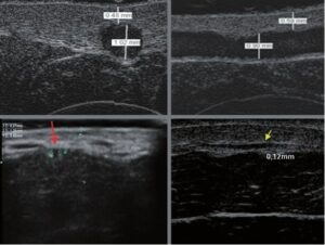Uno de los tratamientos más comunes realizados en las clínicas de flebología y medicina estética es el cierre de pequeños vasos sanguíneos en las extremidades inferiores, las llamadas telangiectasias y vasos reticulares. Actualmente, existen varios métodos que permiten cerrar los vasos dilatados y obtener los efectos deseados, tanto terapéuticos como estéticos. Por desgracia, a pesar de aplicar diversos métodos e instrumentos, los efectos de los tratamientos no suelen ser satisfactorios. El factor que contribuye en gran medida a disminuir la eficacia de tales procedimientos es la complicada anatomía del sistema venoso y la falta de un método para especificar con precisión el curso del vaso, su diámetro, localización en la piel, etc. La ultrasonografía de alta frecuencia es un método que permite determinar con exactitud el curso de los vasos, así como medir sus parámetros básicos, como el diámetro, la profundidad en la piel y la presencia o ausencia de perfusión. Gracias a la imagen por ultrasonidos con el uso de transductores de alta frecuencia, se puede seleccionar un método de tratamiento y unos parámetros de procedimiento adecuados, lo que conlleva mejorar la eficacia del procedimiento en sí. La ecografía también puede utilizarse para monitorizar los procedimientos realizados.