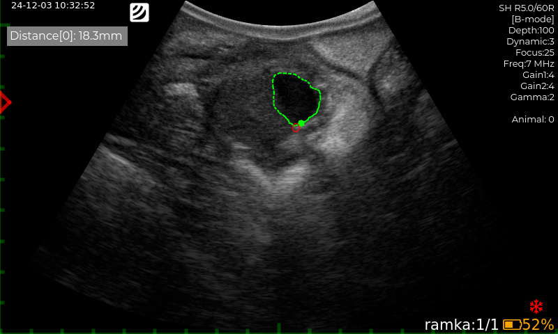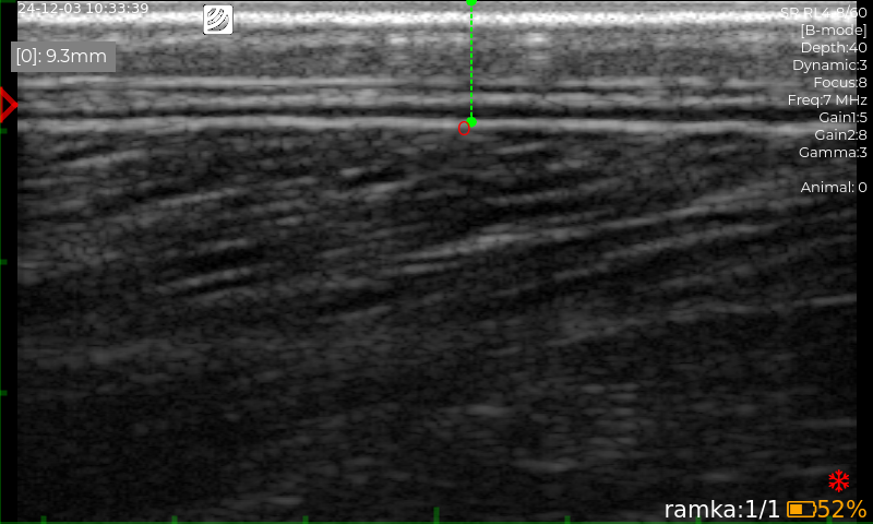 Al diseñar el ecógrafo, utilizamos tecnologías modernas para reducir el peso del dispositivo. El peso total del ultrasonido, incluyendo la sonda y la batería, es de solo 2,6 kg. Como resultado, las largas jornadas de trabajo con equipos portátiles no suponen ninguna carga para un veterinario de campo.