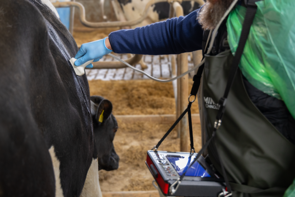 El modo de imagen con Doppler color permite el diagnóstico de la actividad del cuerpo lúteo 18-20 días después de la inseminación. Esto permite la identificación de las vacas que no han sido fecundadas antes de que ocurra el siguiente ciclo de estro. La activación instantánea y los ajustes optimizados garantizan la comodidad de trabajo y la usabilidad.