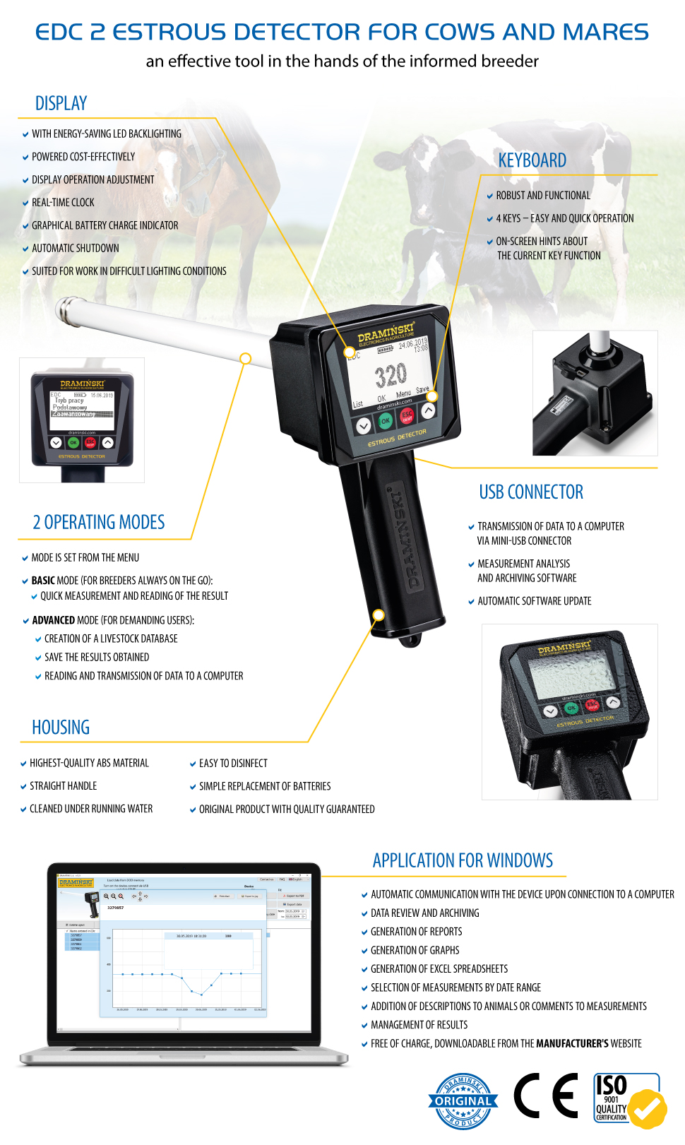 Detector EDC2 Dramiński para vacas y yeguas – modelo práctico
